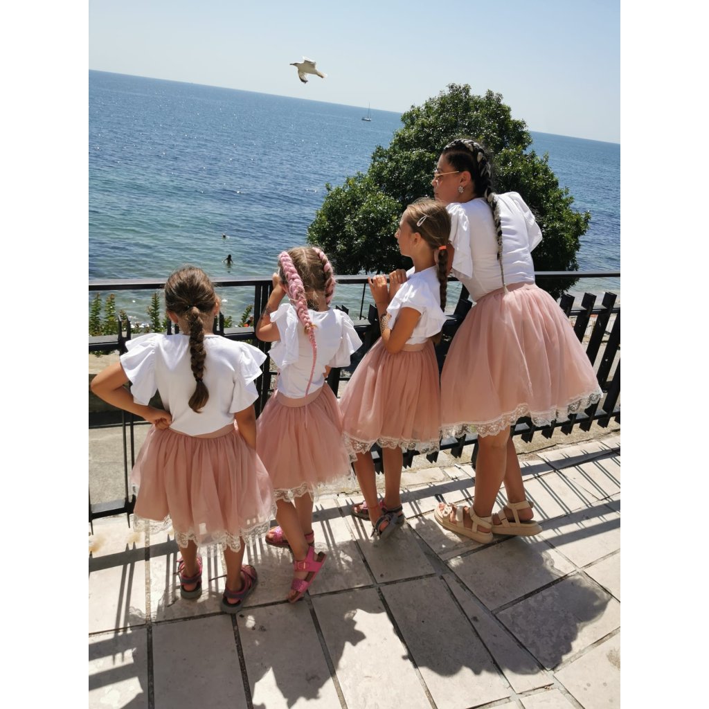 Dámska tylová sukňa „Ava“ – púdrová s čipkou