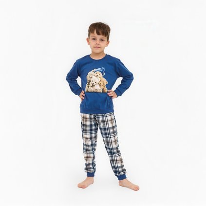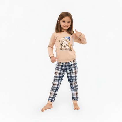 Roztomilé, pohodlné a hrejivé pyžamo TeddyDream z mäkkej 100 % bavlny s medvedíkovou potlačou a károvanými nohavicami prinesie teplo, pohodlie a rozprávkovú atmosféru.