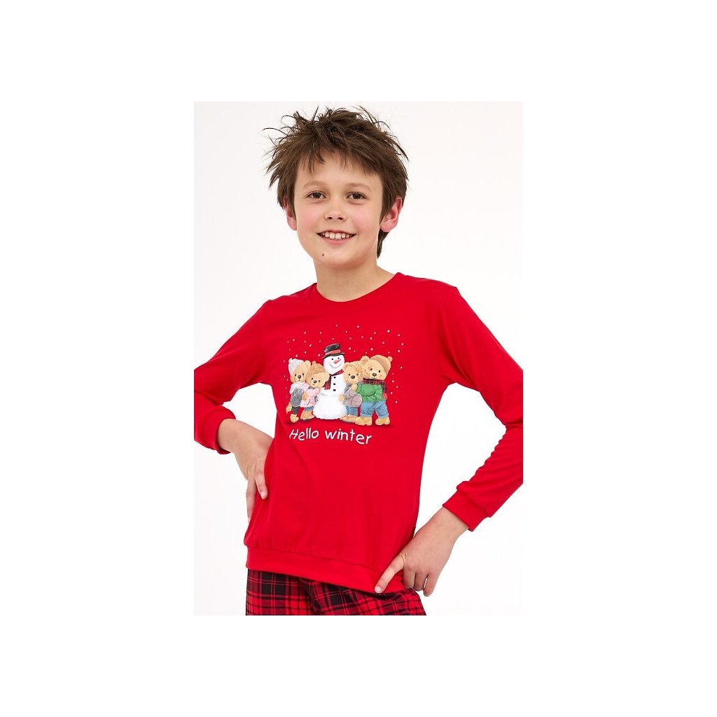Chlapčenské vianočné pyžamo Hello Winter je ako stvorené na sviatočné večery plné smiechu, rozprávok a rozbaľovania darčekov. Vrchný diel je z mäkkej 100 % bavlny, má dlhý rukáv a hravú vianočnú potlač s nápisom Hello Winter, ktorá si okamžite získa každé dieťa.