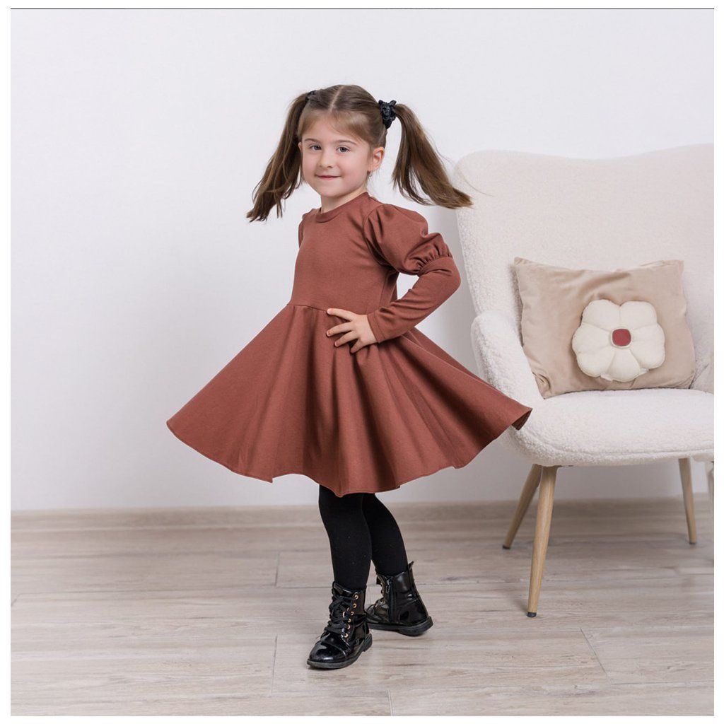 Anita- Dievčenské točivé šaty s puff rukávmi hnedé