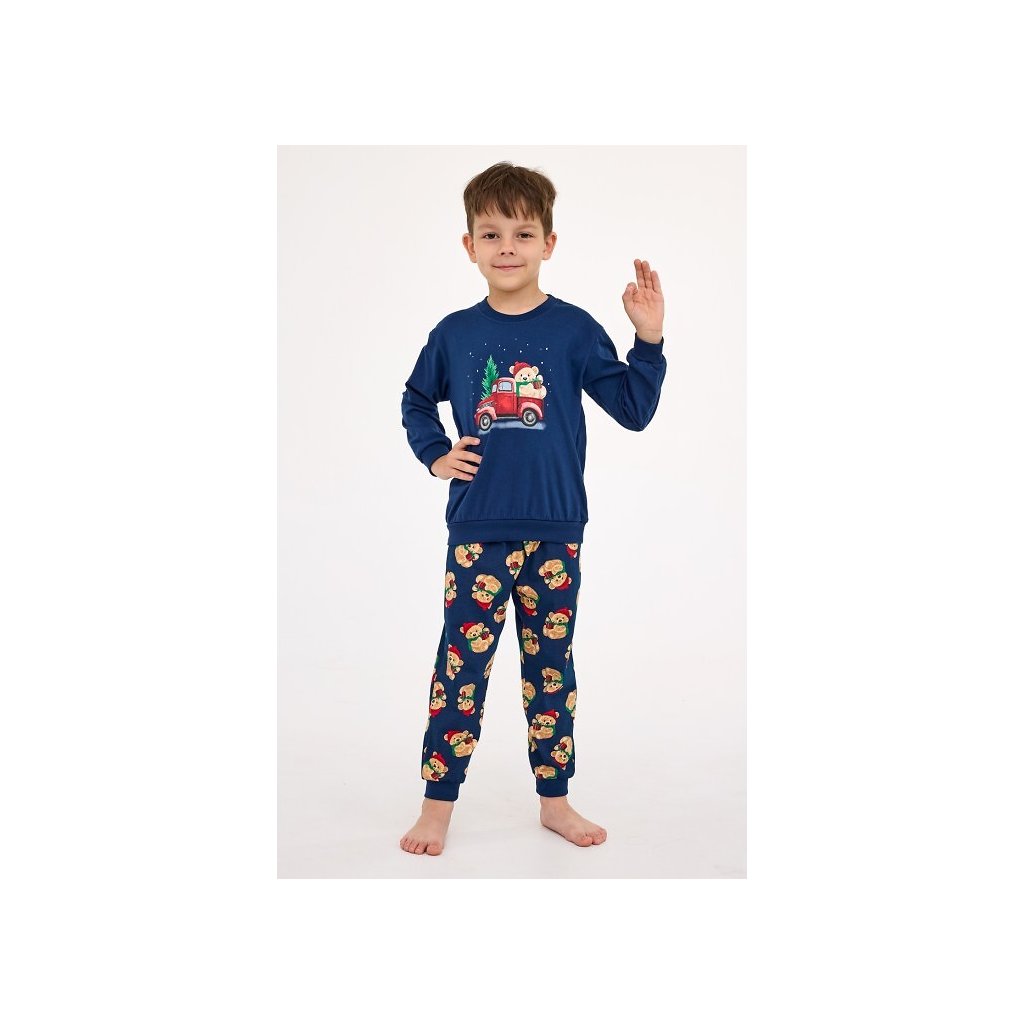 👕 Tričko s dlhým rukávom je vyrobené zo 100 % bavlny, ktorá je jemná, priedušná a ideálna aj pre citlivú detskú pokožku. Prednú časť zdobí veselý vianočný motív s autíčkom 🚗 a stromčekom , ktorý rozžiari každý deň. Dlhé nohavice s hravým vzorom majú pohodlný elastický pás a manžety na nohaviciach, ktoré zaručia, že pyžamo perfektne sedí a nezošmykuje sa ani počas nočného dobrodružstva