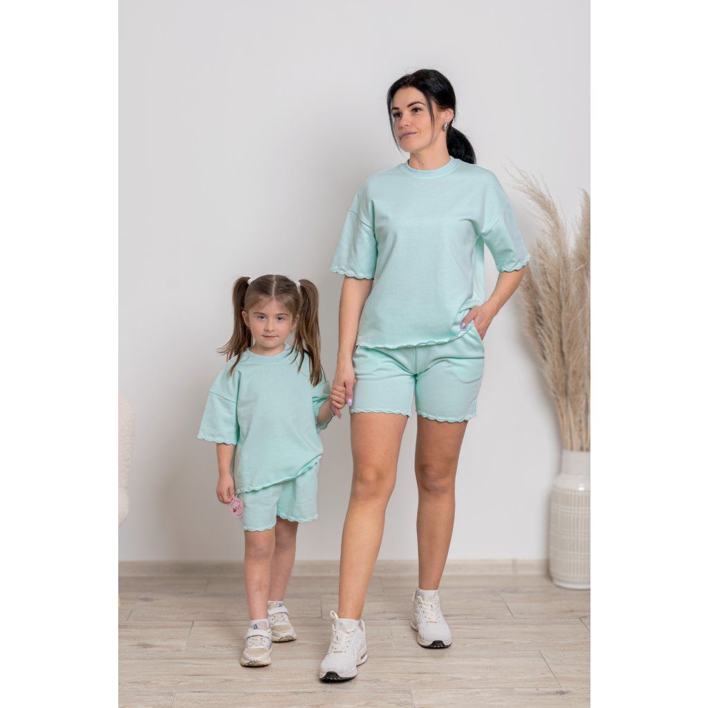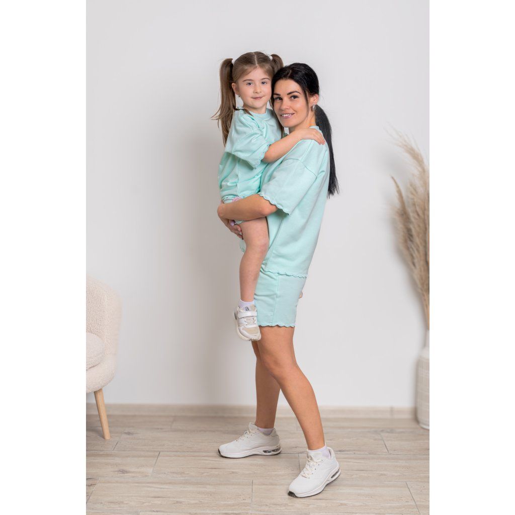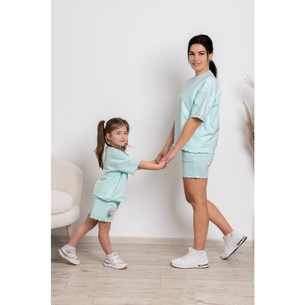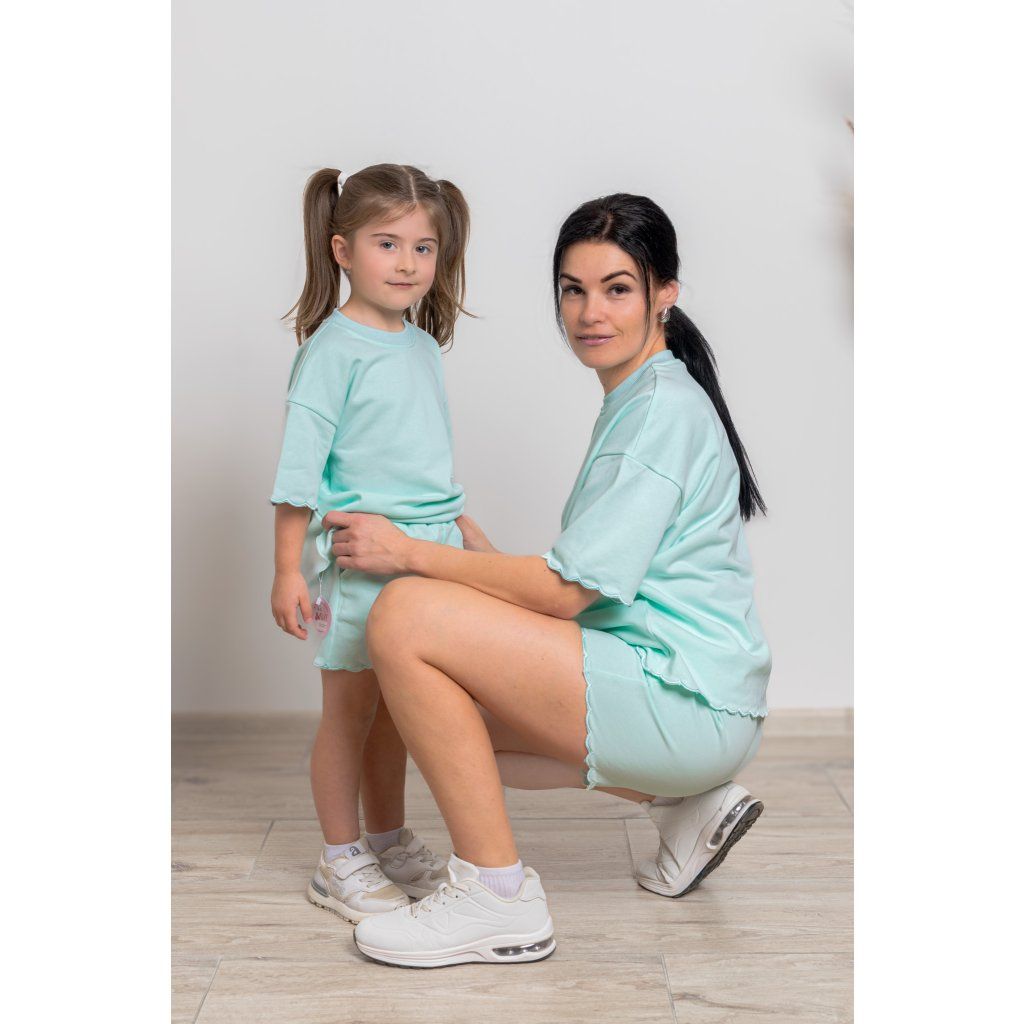 Prežite krásne letné chvíle v dokonale zladenom outfite, ktorý spája pohodlie, jemnosť a svieži štýl. Súprava Liana v mentolovej farbe je navrhnutá pre mamičky a ich dcérky, ktoré sa chcú cítiť pohodlne, slobodne a zároveň krásne zladené. Či už sa chystáte na výlet, prechádzku, dovolenku alebo si chcete užiť obyčajný deň spolu, Liana je presne ten outfit, po ktorom siahnete bez rozmýšľania.