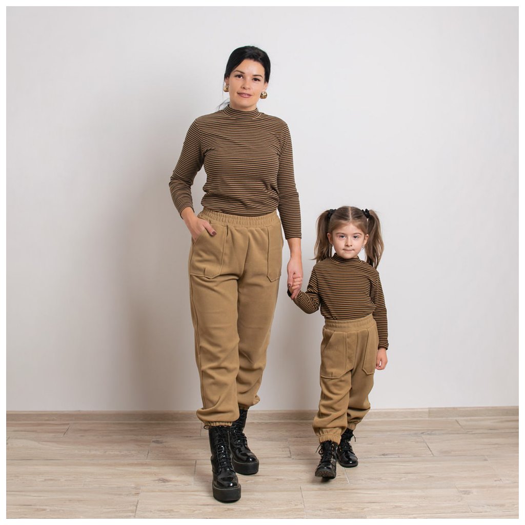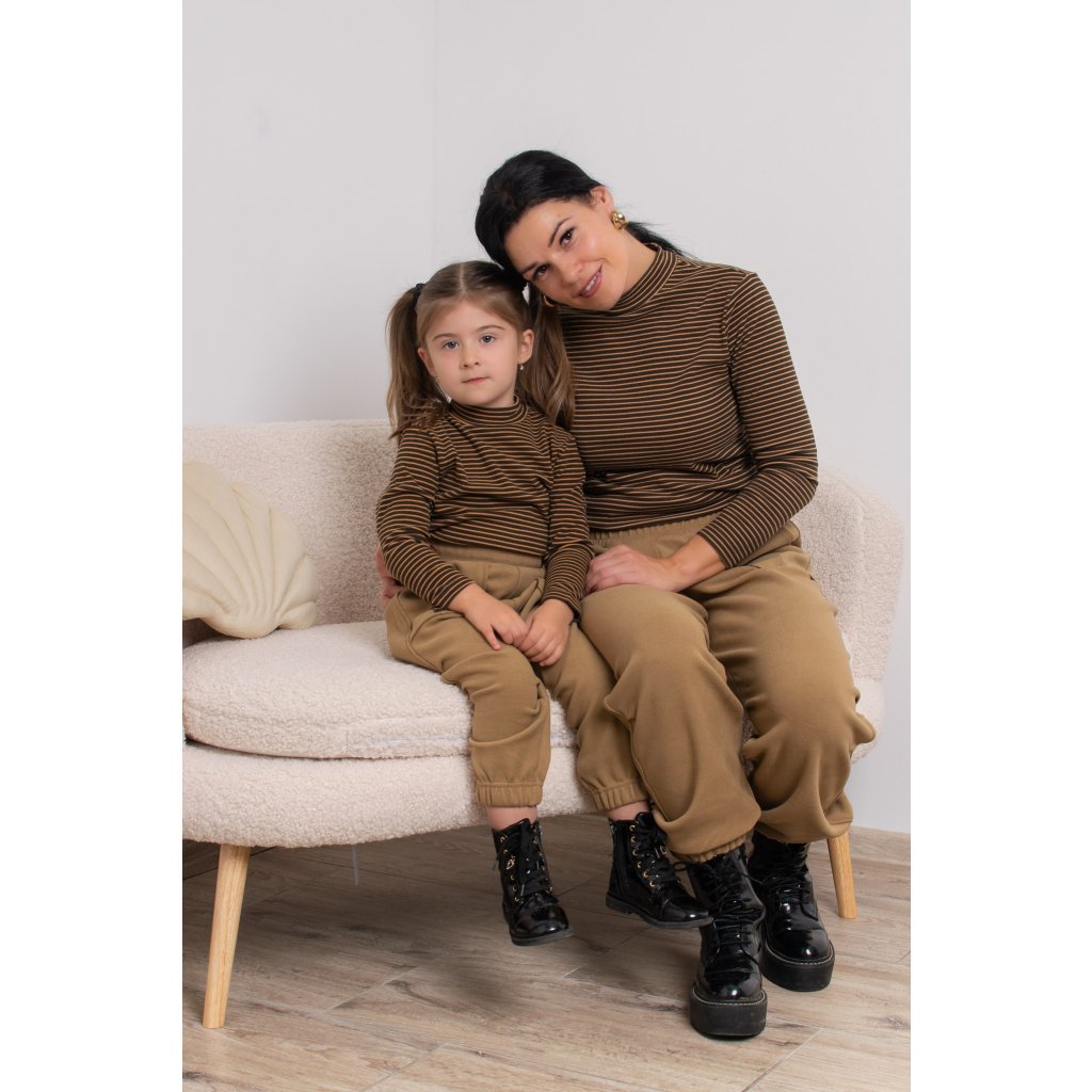 ✨ Sada – Mila pruhovaný polorolák mama a dieťa je ako stvorená na chladnejšie dni – pružná, hebká a extrémne pohodlná. Tento kúsok si deti aj mamy zamilujú na prvé oblečenie v hnedej farbe s telovými pruhmi.