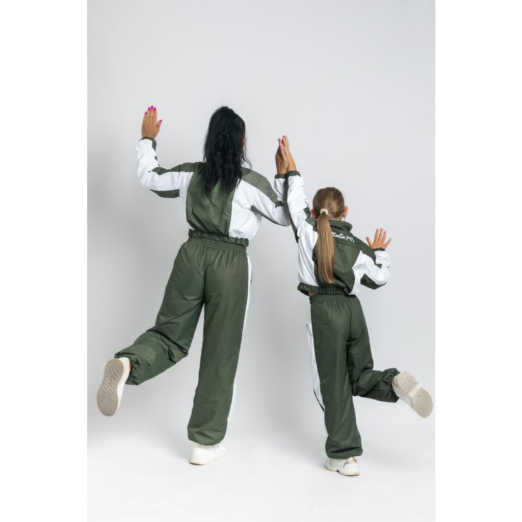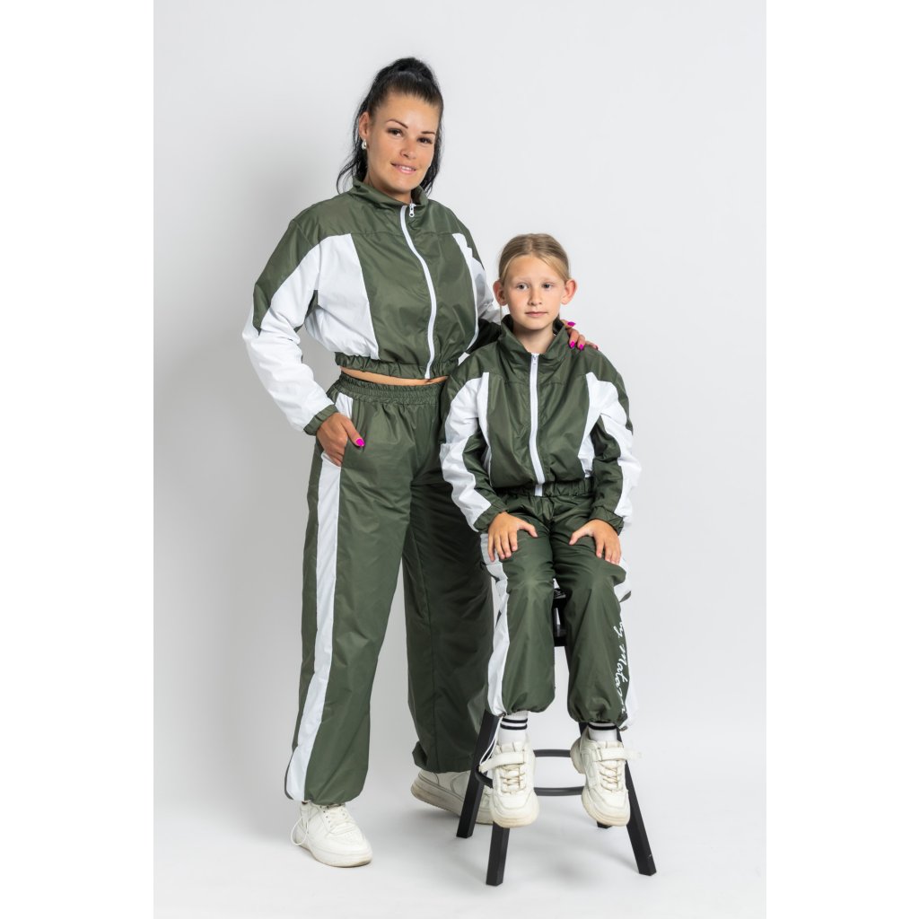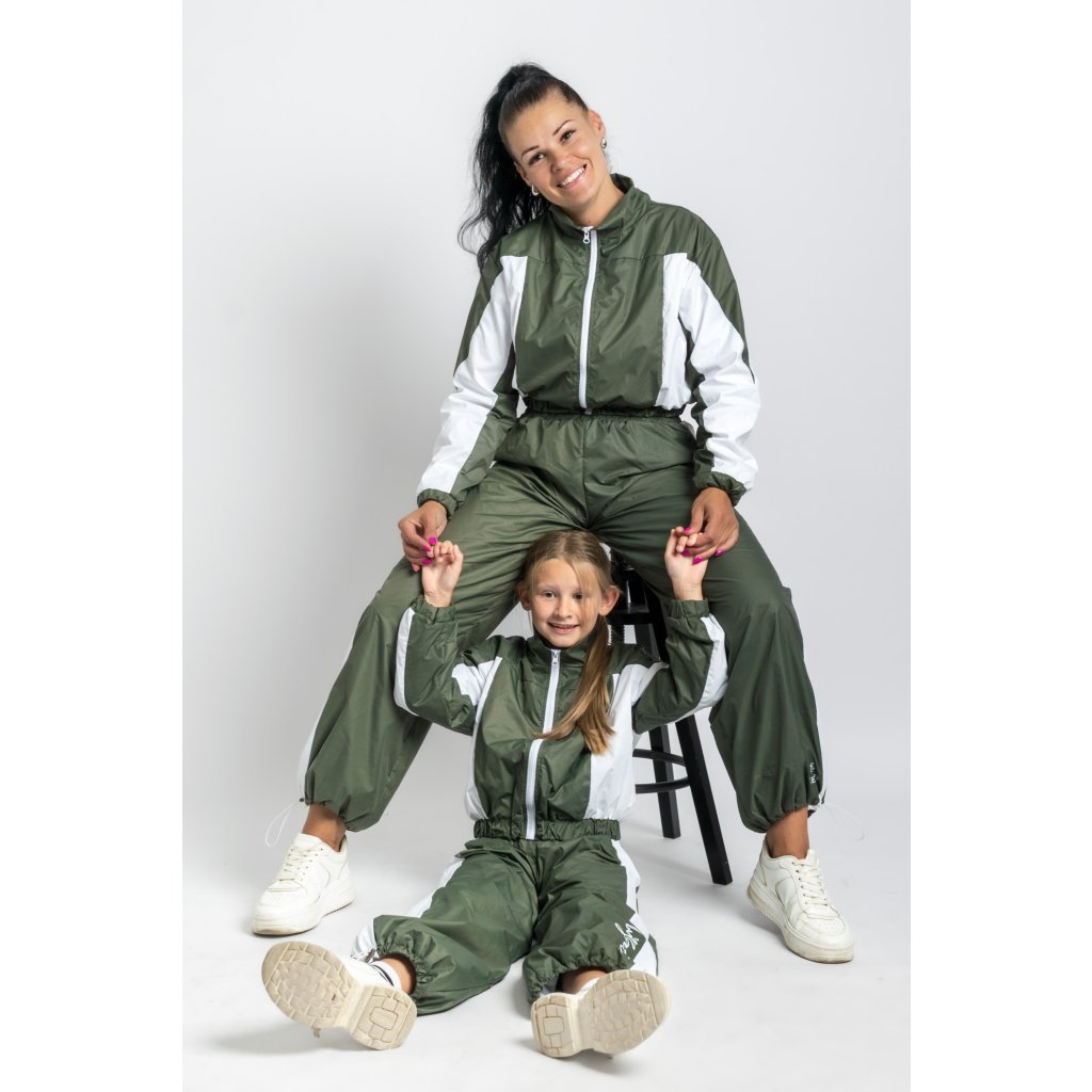 Sada Oliva – zeleno-biela šuštiaková súprava pre mamu a deti