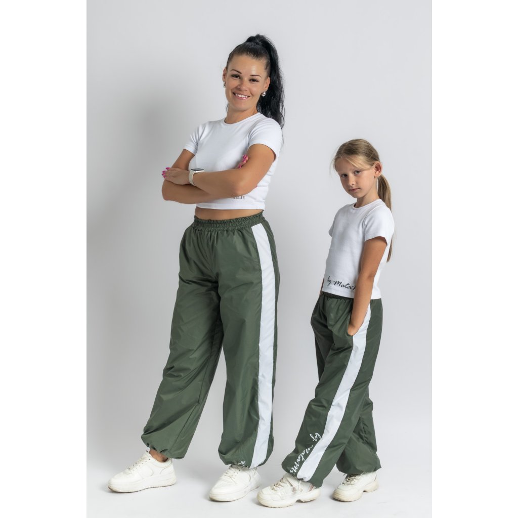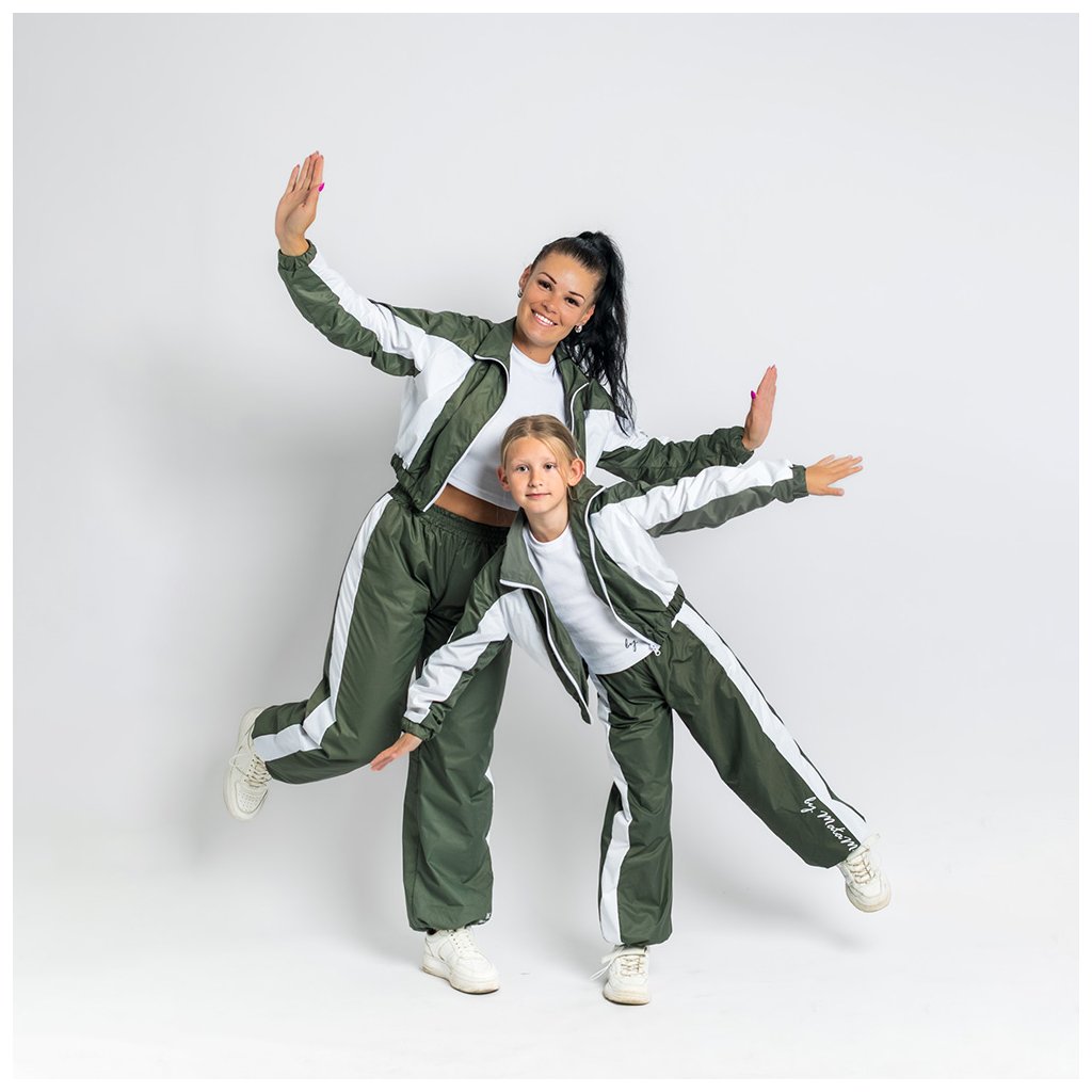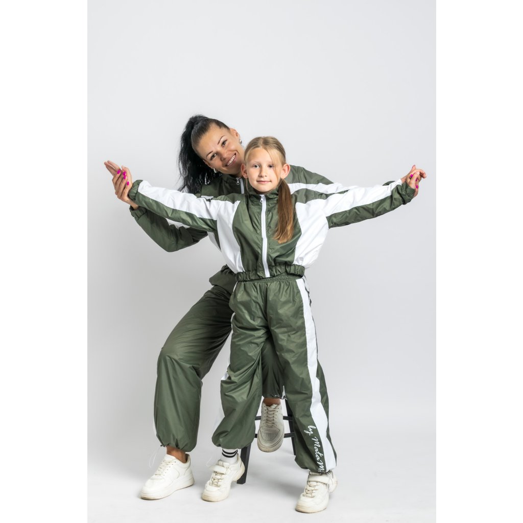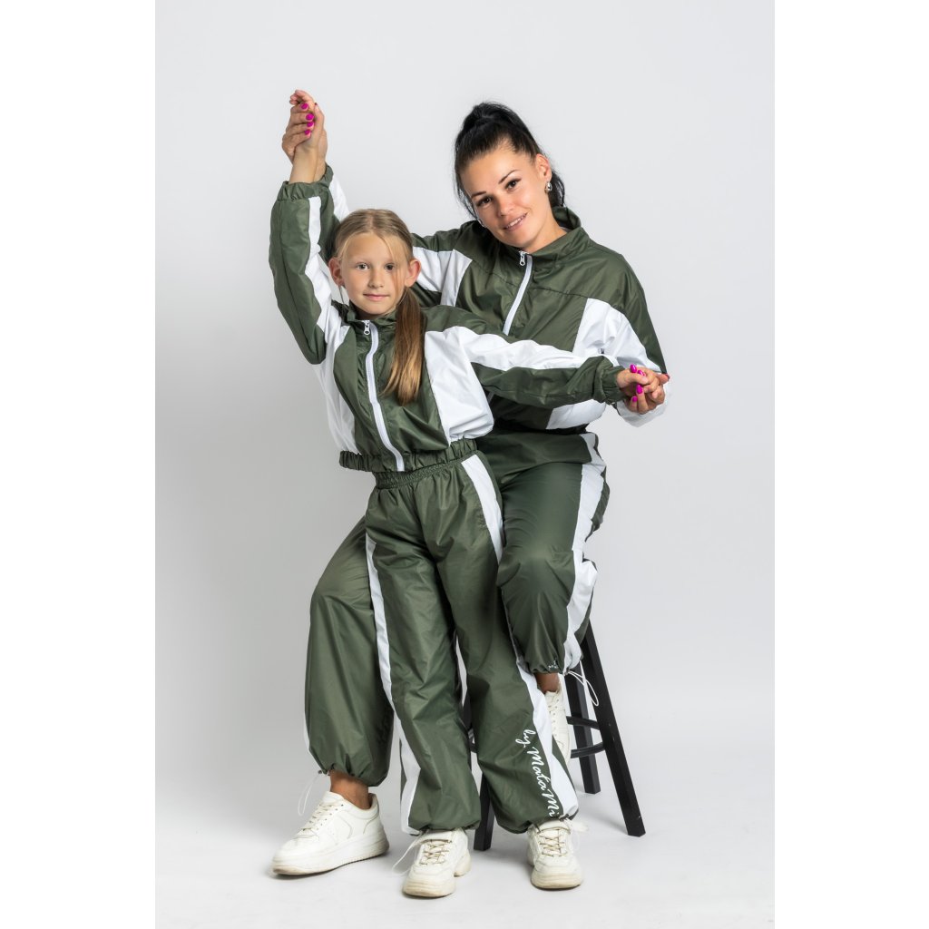 Sada Oliva – zeleno-biela šuštiaková súprava pre mamu a deti