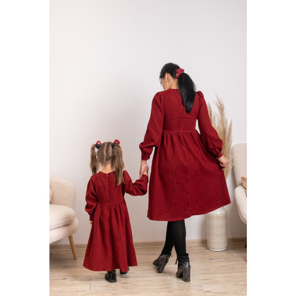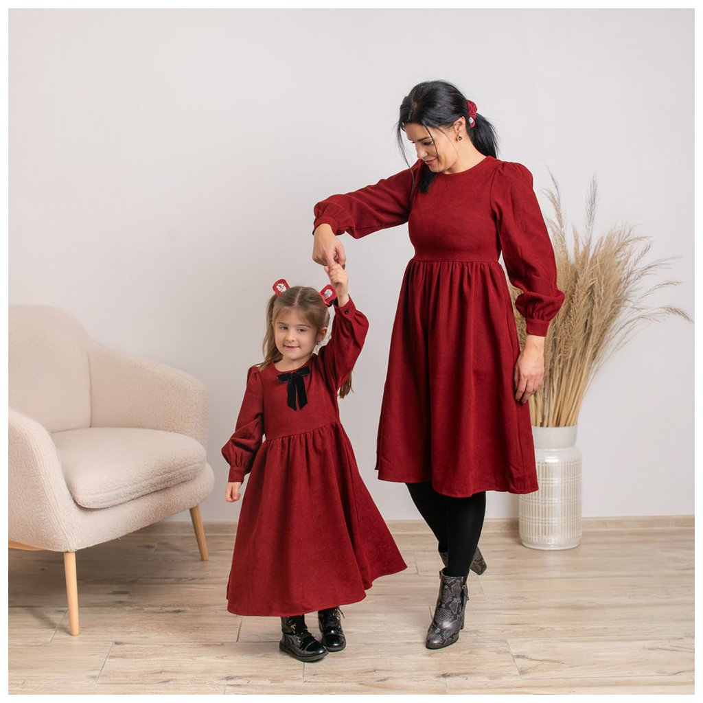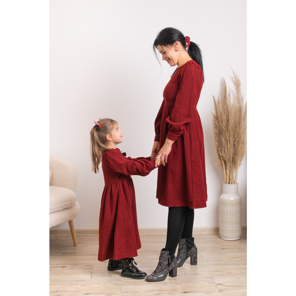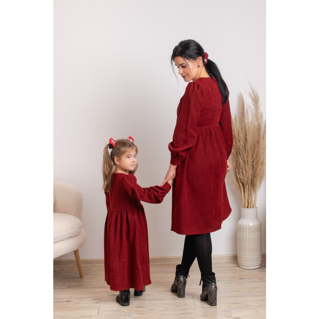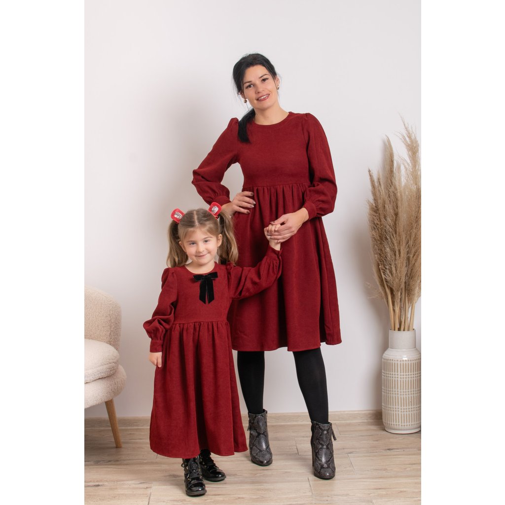 Predstavujeme vám sadu menčestrových šiat Valéria, ktoré sú ideálnou voľbou na sviatky, rodinné fotenia, oslavy či návštevy. Menčester v hlbokej vínovo-červenej farbe pôsobí luxusne, no zároveň sú šaty príjemné a pohodlné na nosenie.