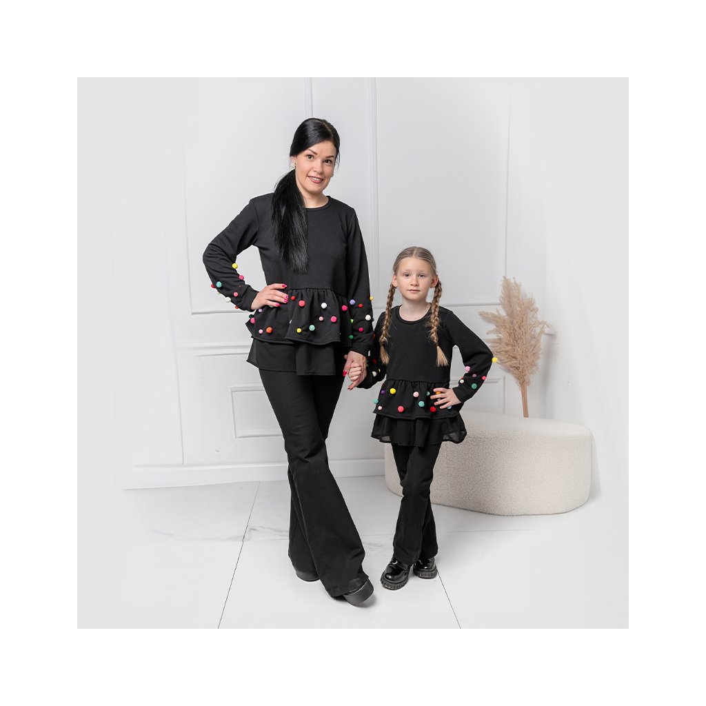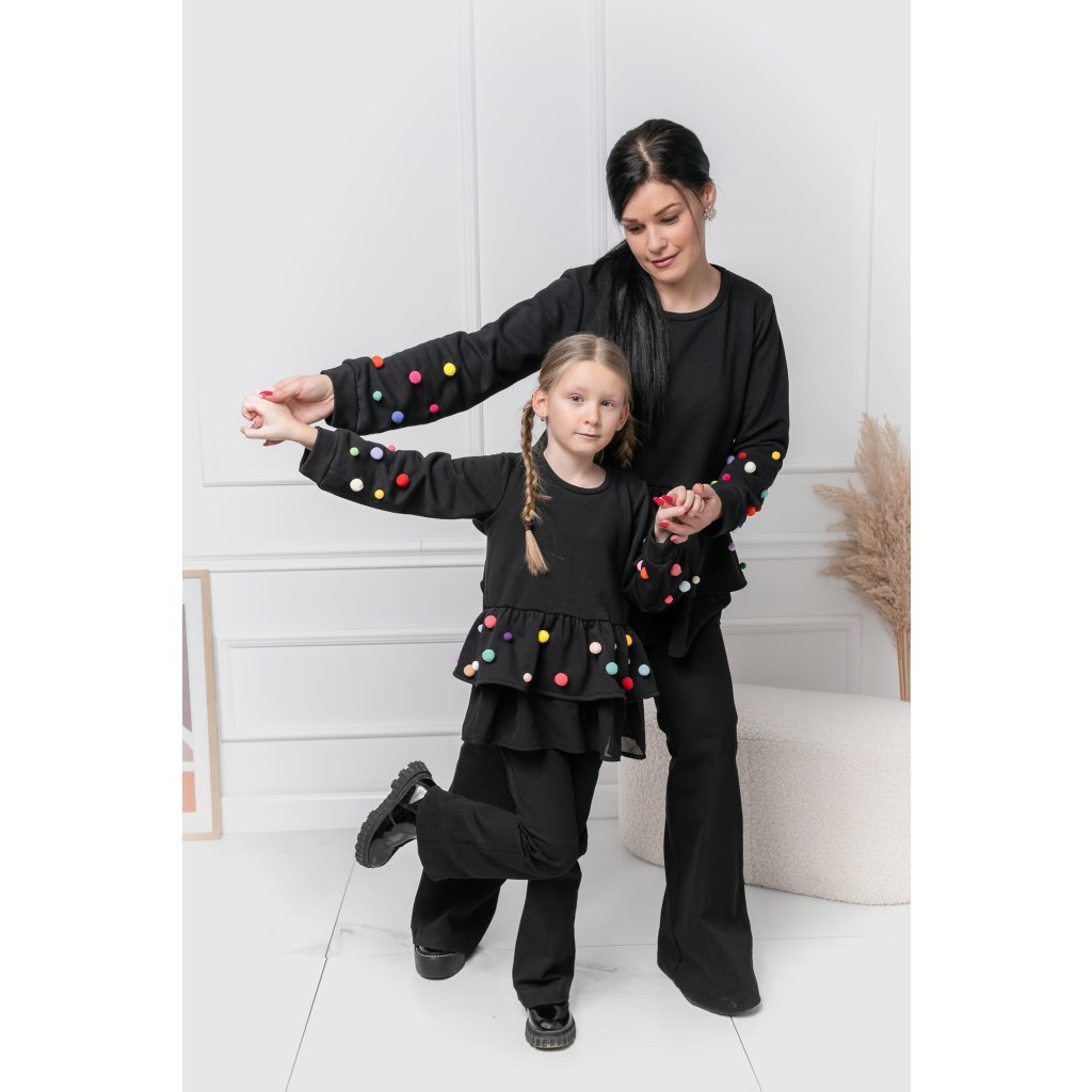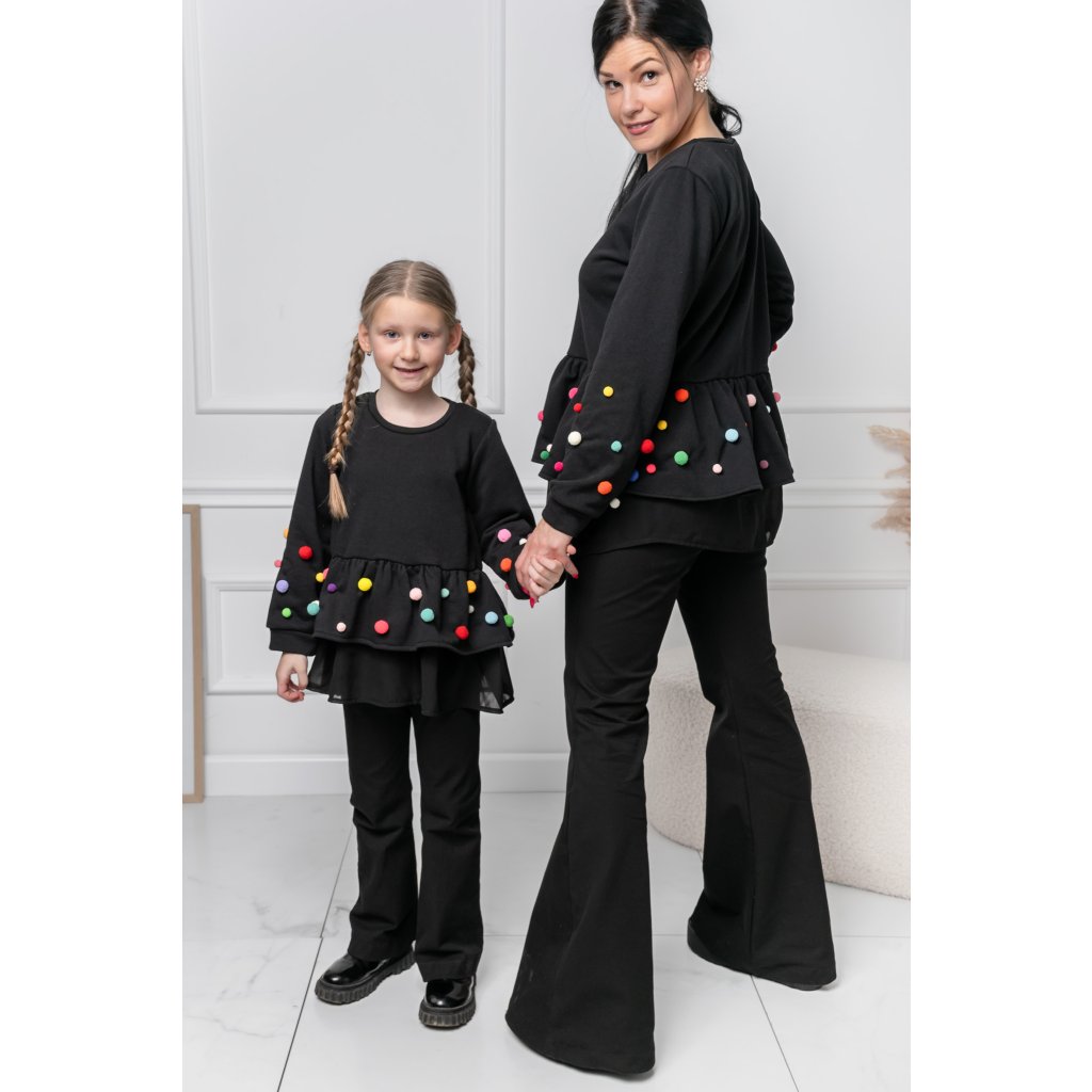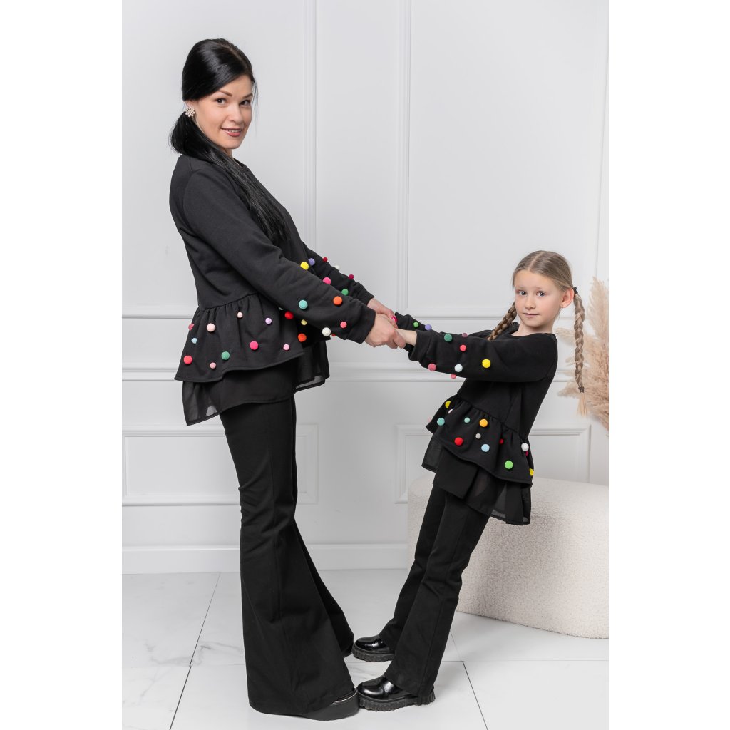 Trojset mikín Belle je navrhnutý tak, aby priniesol váš originálny šatník a hravosť. Tento model v čiernej farbe s farebnými guľkami dodáva oblečeniu jedinečný vzhľad a veselú atmosféru. Vyrobené sú z mäkkého, elastického a príjemného materiálu , ktorý poskytuje maximálne pohodlie pri každodennom nosení. Voľný strih umožňuje jednoduché vrstvenie a prispôsobenie rôznym postavám. Dvojvrstvový volánik v spodnej časti tuniky dodávajúci kvalitný a hravý nádych. Táto mikina sa skvele kombinuje s legínami, nohavicami alebo džínsami pre štýlový, no pohodlný outfit. Perfektná na nosenie do práce, školy, škôlky, ale aj na rodinné výlety či voľné chvíle. Dostupná v rôznych veľkostiach a farbách na želanie.
