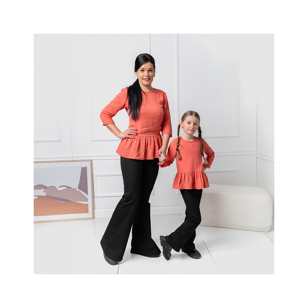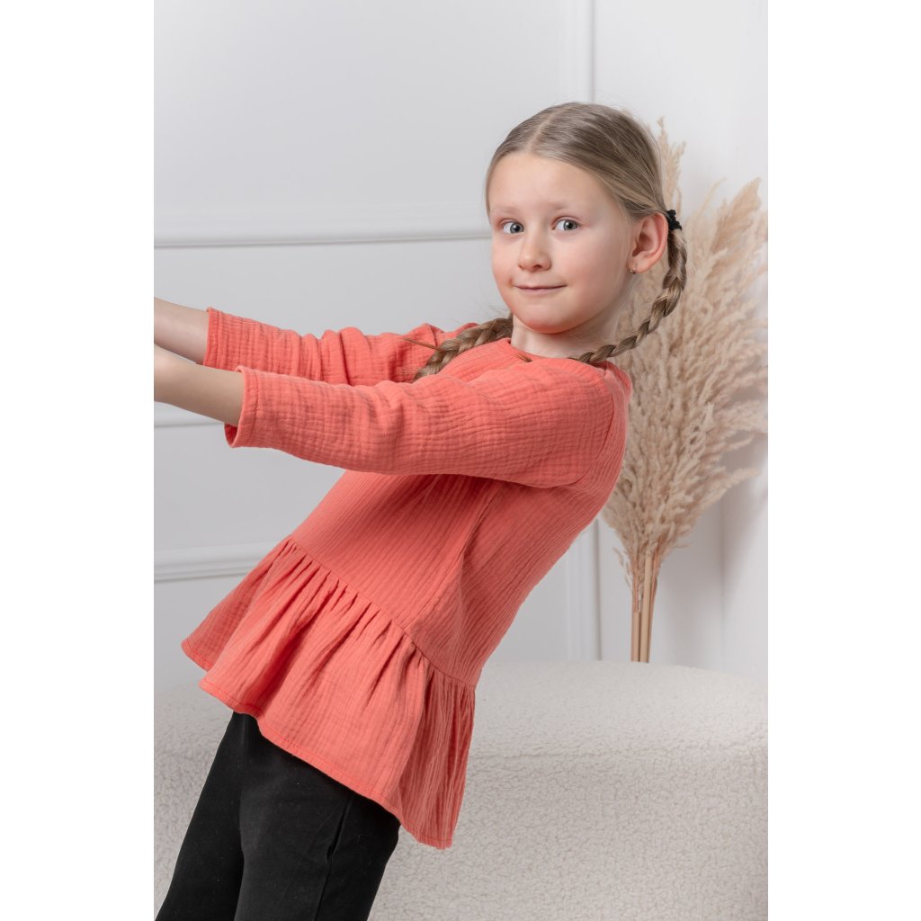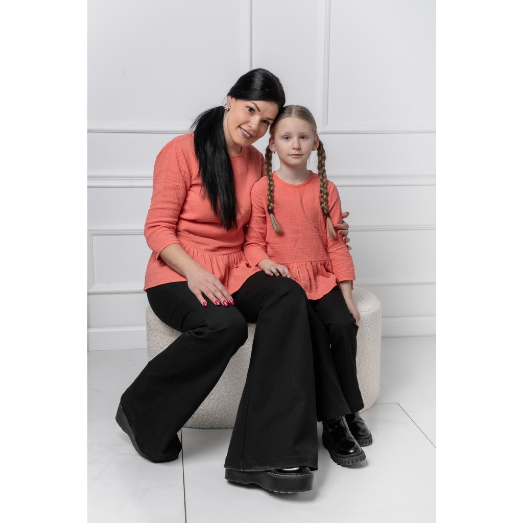 Trojset mušelínových blúzok Elara prináša dokonalú kombináciu komfortu a elegancie. Mušelínový materiál je ľahký, príjemný na dotyk , čo komfortný materiál počas celého dňa. Lososová farba dodáva blúzkam jemný a vyzerá, zatiaľ čo volánik v spodnej časti podčiarkuje ženskosť a hravosť. Dámsky model je navrhnutý pre moderné ženy, ktoré hľadajú univerzálny kúsok do šatníka – skvele sa hodí vhodnými nohavicami aj ležiacimi rifľami. Blúzka sa hodí na bežné dni, ale aj na pracovné stretnutia či rodinné oslavy. Detské modely sú prispôsobené na celodenné pohodlie Ich ľahká a vzdušná tkanina je ideálna na prechodné obdobie – jarné a jesenné dni. Blúzky sú vhodné na bežné nosenie, ale aj na špeciálne príležitosti. Model je dostupný vo viacerých veľkostiach ako možnosť šitia na mieru podľa individuálnych požiadaviek.