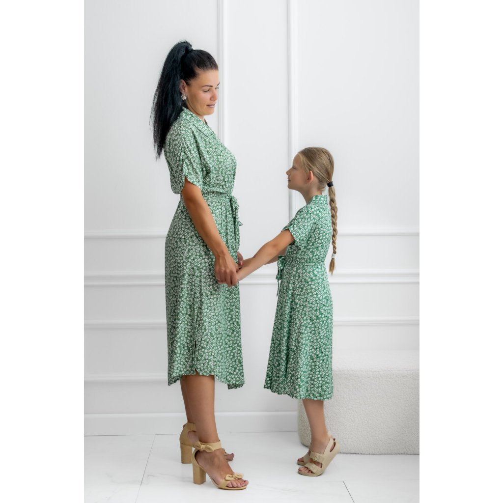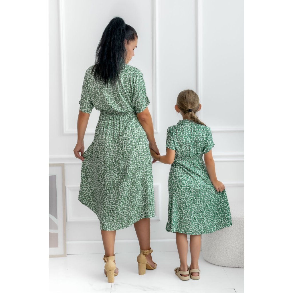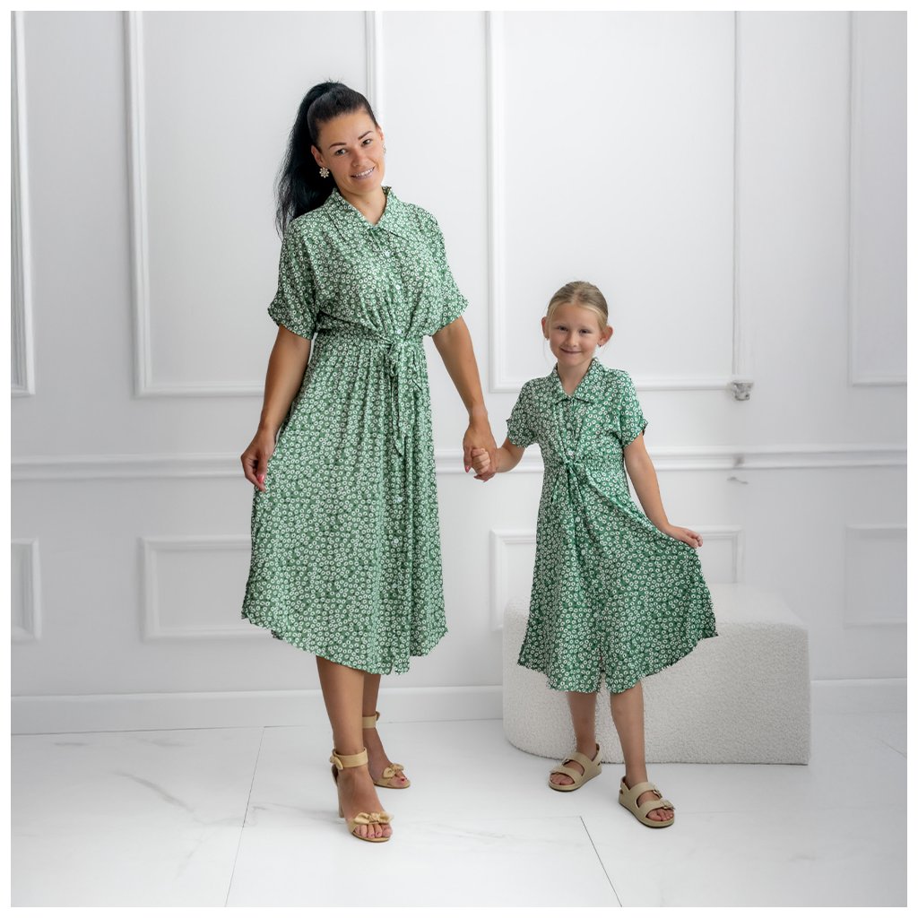 ada letných šiat Laura v elegantnej farbe s bielou potlačou je štýlový a pohodlný outfit pre mamu a dve dcéry, ktorý využijete na rôzne príležitosti – od rodinných osláv, prechádzok, až po letné dovolenky. Vyrobené z ľahkého a priedušného materiálu , ktorý zaručuje komfort počas teplých dní. Košeľový strih s gombíkmi, golierom a krátkym rukávom pôsobí moderne a vkusne. Opasok na viazanie v páse umožní prispôsobiť strih postave a krásne ju zvýrazniť. Výhodou je možnosť nosiť šaty na dva spôsoby – zapnuté ako klasické šaty alebo odopnuté ako ležérne kimono. Zelená farba v kombinácii s bielym vzorom pôsobí sviežo.