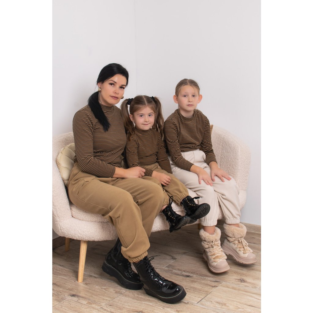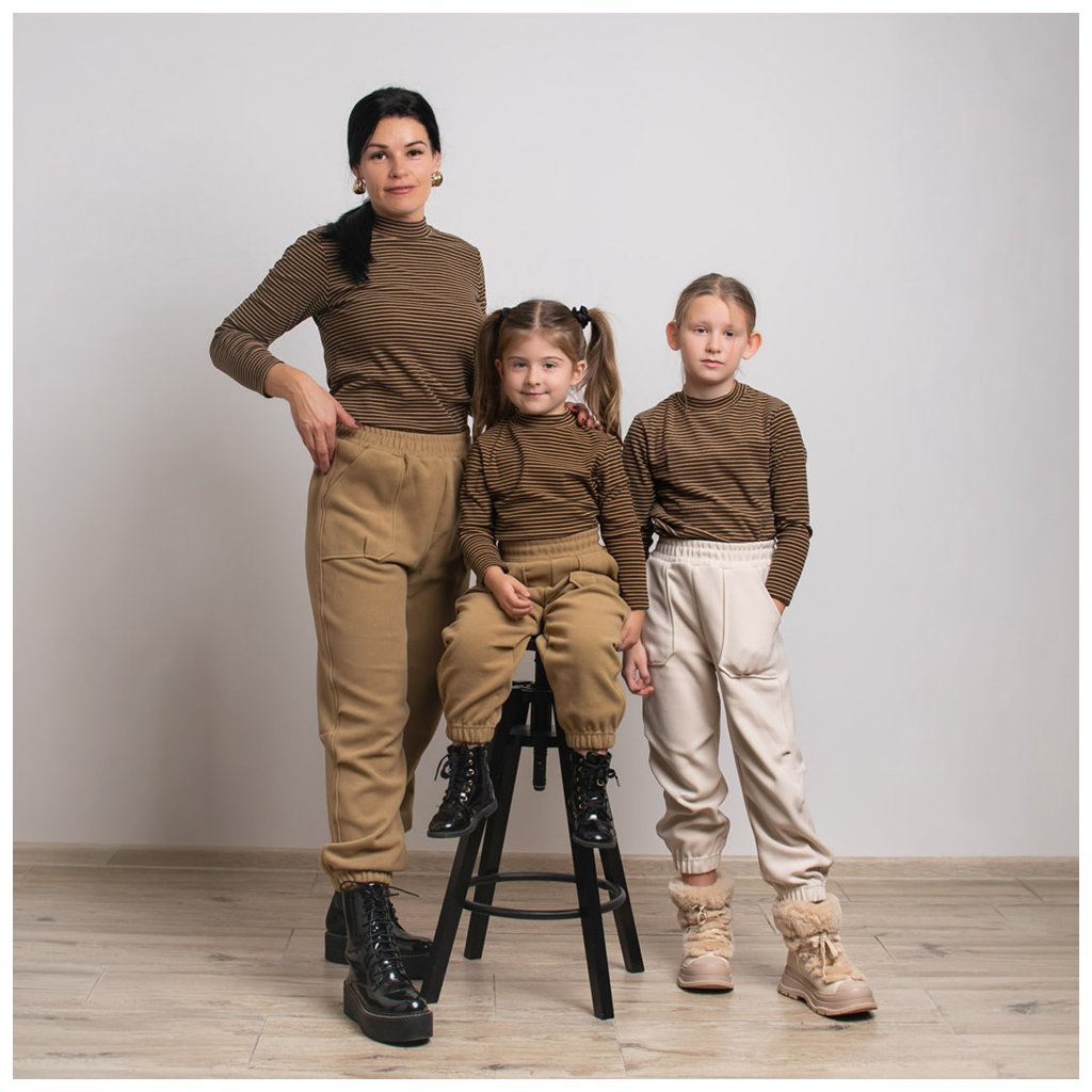 Objavte nežný trojset Mila – pruhovaný hnedý polorolák pre mamu, a dve deti. Tento kúsok je láska na prvé oblečenie. Vďaka svojmu príjemnému materiálu, ktorý je mäkký, poddajný a veľmi pohodlný, si ho deti aj mamy rýchlo obľúbia v hnedej farbe farbe s telovými pruhmi.