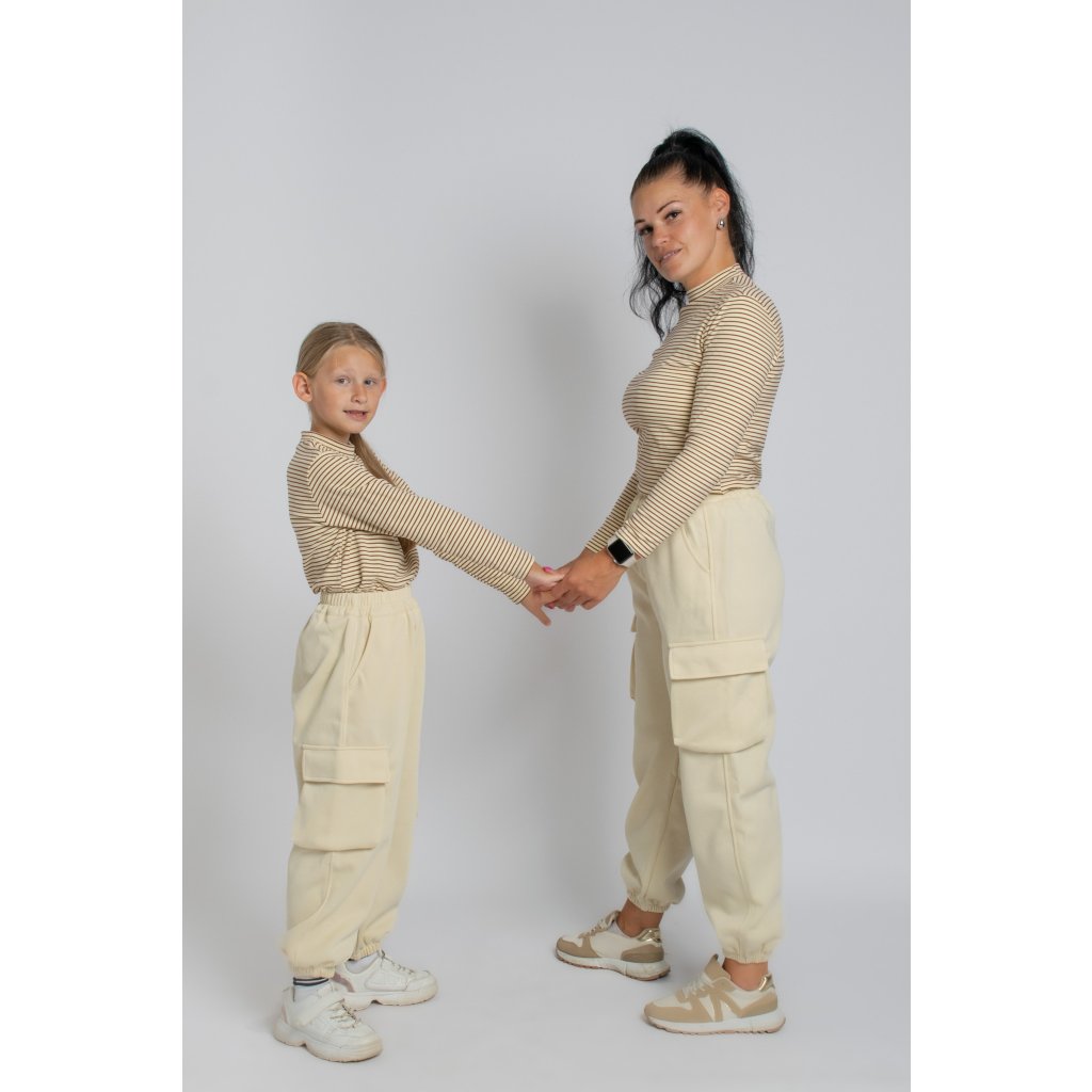 Objavte nežný trojset Mila – pruhovaný telový polorolák pre mamu, a dve deti. Tento kúsok je láska na prvé oblečenie. Vďaka svojmu príjemnému materiálu, ktorý je mäkký, poddajný a veľmi pohodlný, si ho deti aj mamy rýchlo obľúbia v telovej farbe s hnedými pruhmi.