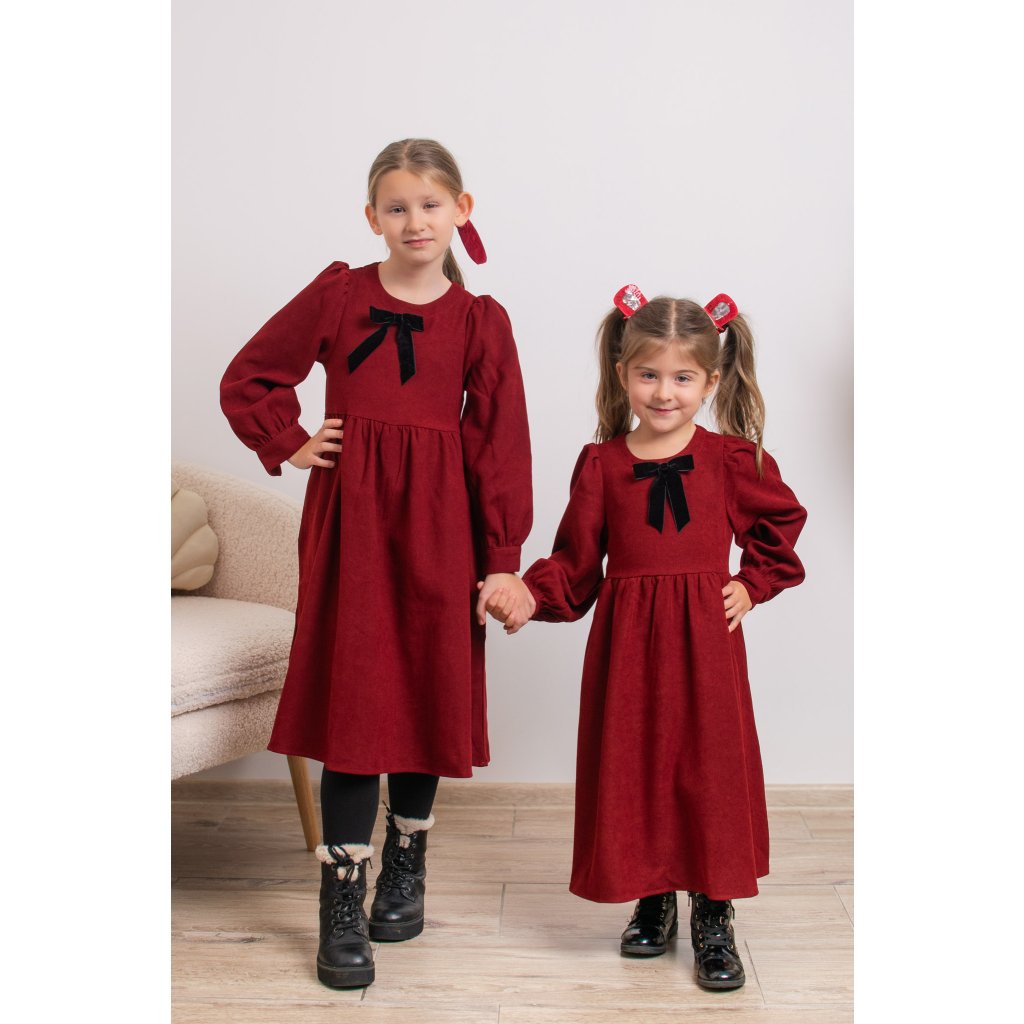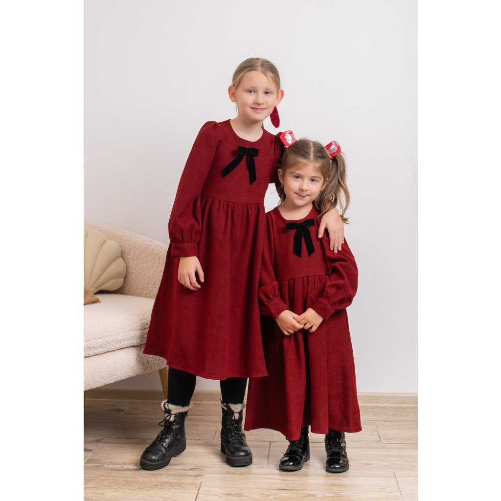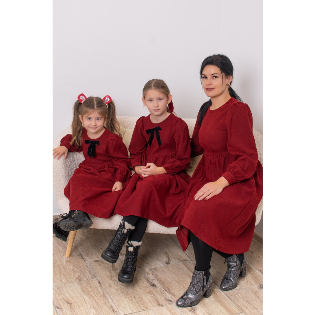 Trojset- Valéria menčestrové šaty mama a dve dcéry bordo