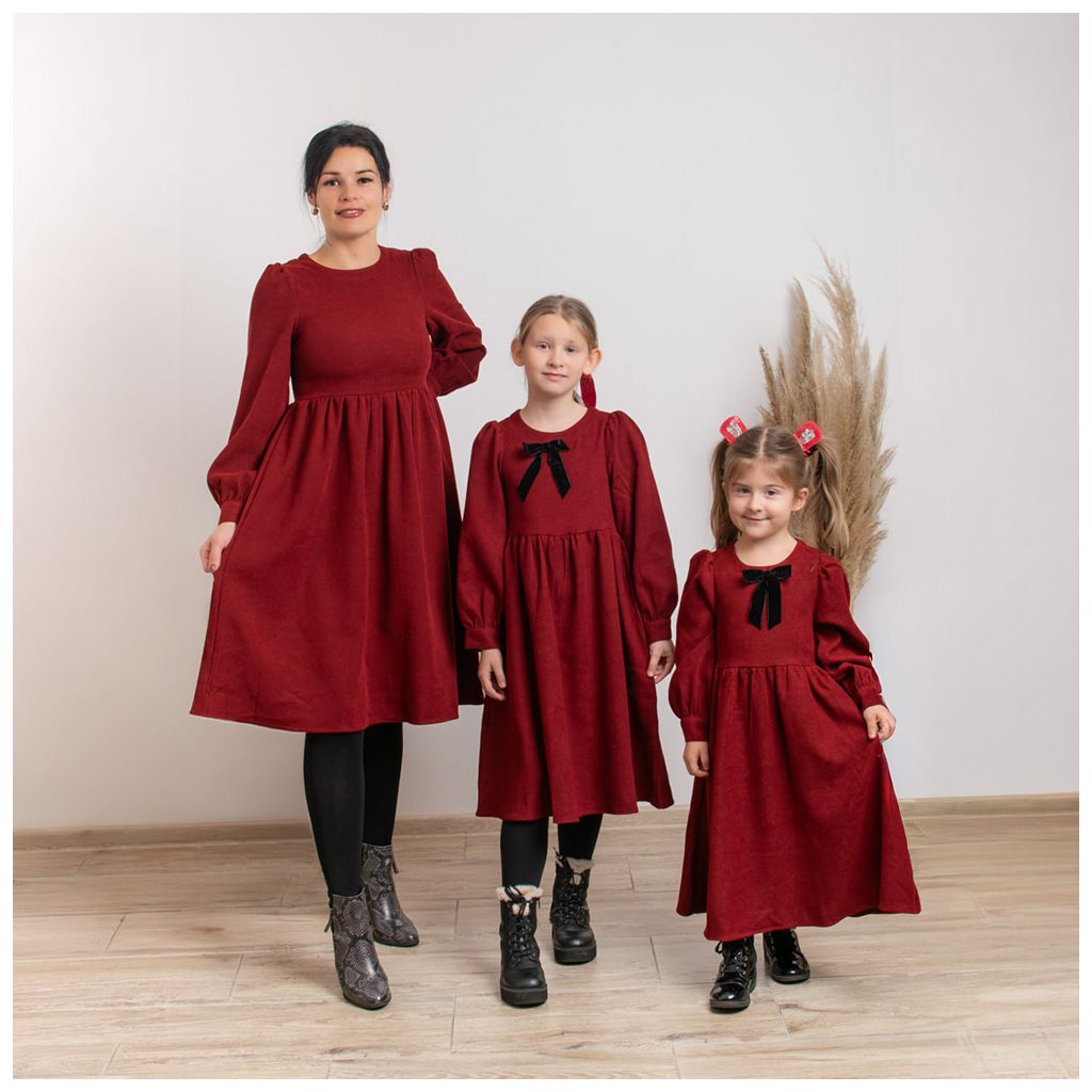 Predstavujeme vám trojset menčestrových šiat Valérie, ktoré sú ideálnou voľbou na sviatky, rodinné fotenia, oslavy či návštevy. Hrejivý menčester v hlbokej vínovo-červenej farbe pôsobí luxusne, no zároveň sú šaty príjemné a pohodlné na nosenie.