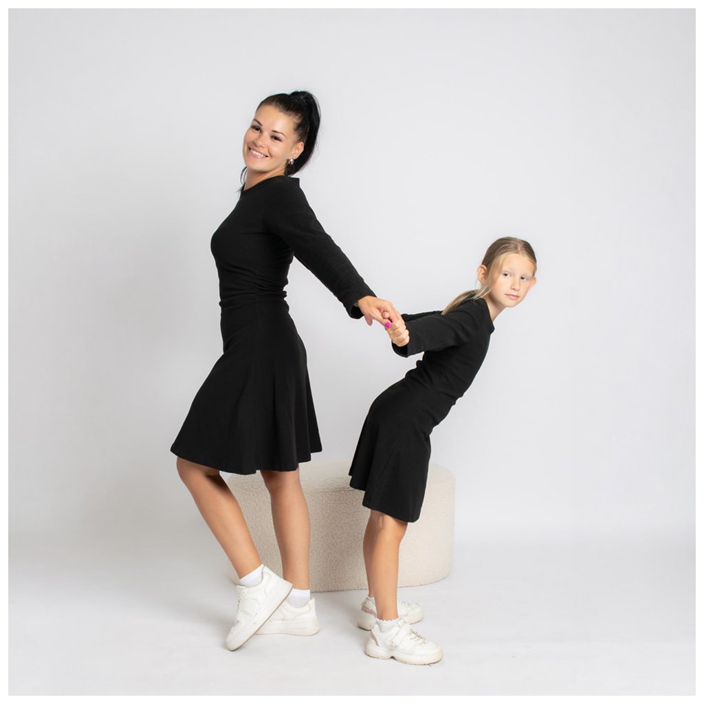 V čiernych šatách Zoe vytvoríte so svojimi dcérkami harmonický a nadčasový outfit. Vhodné na jesenné aj zimné obdobie, šaty zaručia, že spolu budete vyzerať dokonale – či už na rodinných fotkách, oslavách alebo počas bežného dňa.